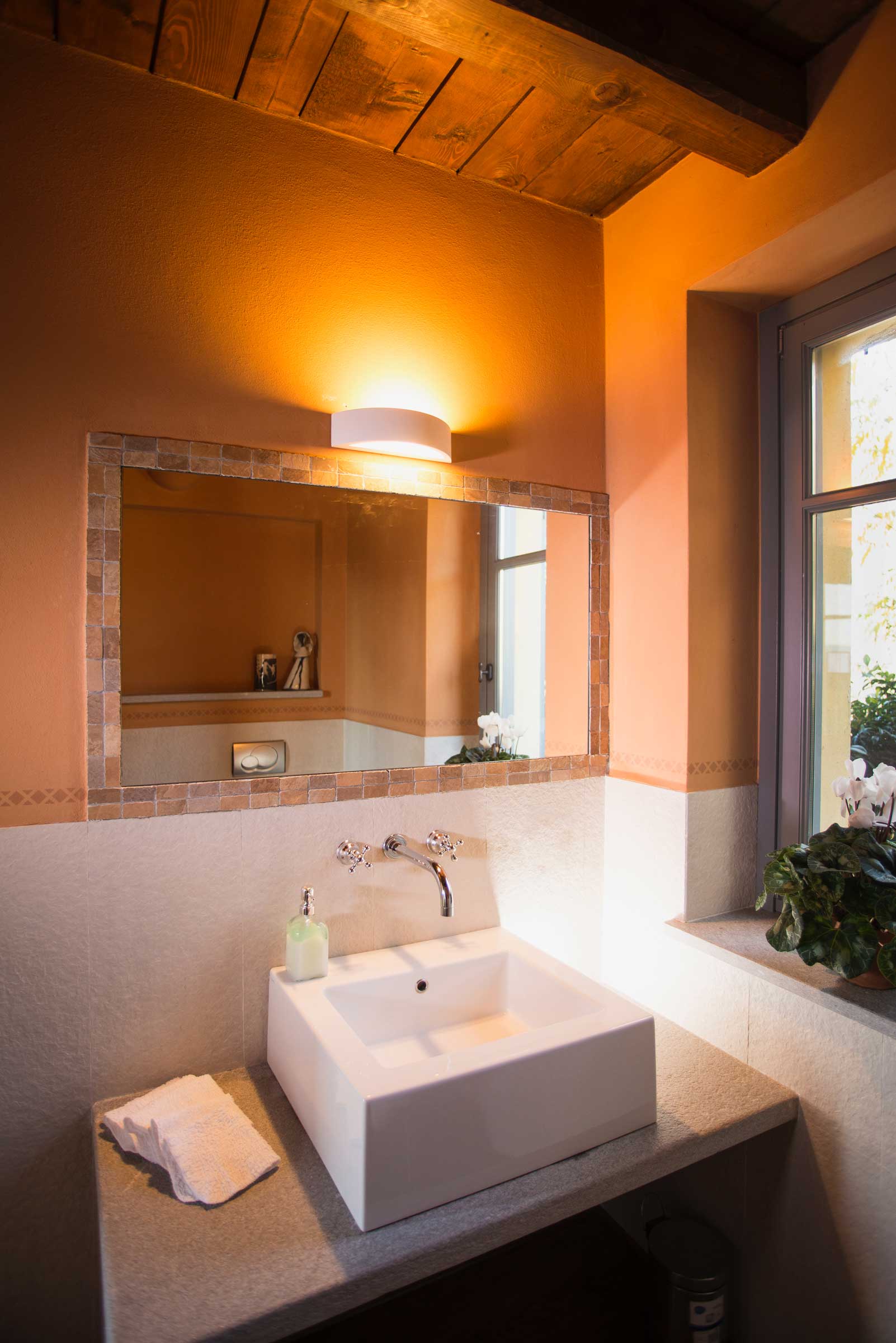 Le Dolcetto, connu depuis 1600, est un vin chaud en bouche, intense et ensoleillé. La chambre Dolcetto évoque ces caractéristiques: toute en bois, très accueillante, avec des meubles d'époque et une armoire construit à partir de portes italiennes des années 1700. La salle de bain a les tons chauds de la terre, des accessoires design et dispose d'une grande douche en maçonnerie et d'un meuble en gneiss blanc.